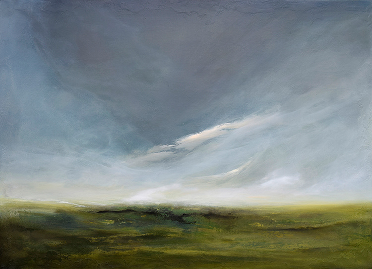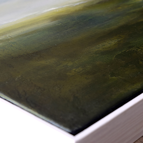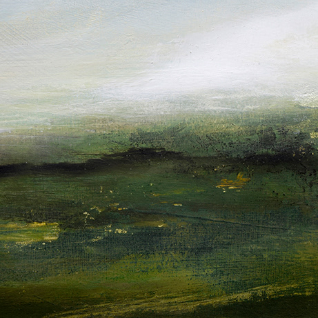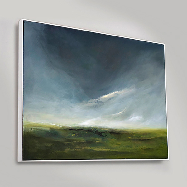 Large, abstract landscape painting, created during lockdown 2021. A few layers of acrylics were loosely applied to a primed and braced board before proceeding to add oils. Cold wax, linseed oil and white spirit were also employed sparingly, adding interesting and sometimes unexpected effects and textures. A calm, peaceful piece, utilising the many shades of green the Irish landscape has to offer. Thin, off-white frame and ready to hang. Artwork will be packed securely and protected with bubble wrap and heavy cardboard for postage.