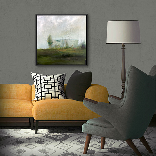 A textured, abstract painting that evokes a sense of mystery and depth. The predominant colour palette revolves around dark and intense hues, primarily greens and browns, creating a moody and atmospheric ambiance. The textured surface of the canvas adds a tactile quality to the artwork, inviting viewers to engage with the piece on a sensory level.